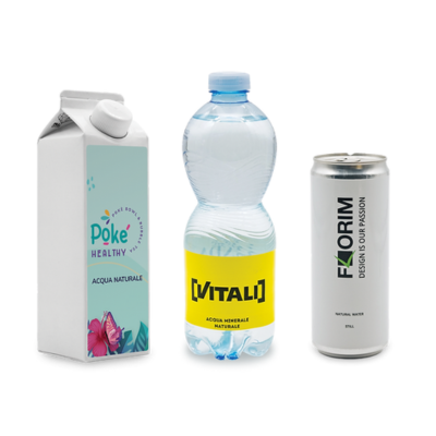 - A scelta tra: 1/2L acqua naturale, 1/2L acqua gasata